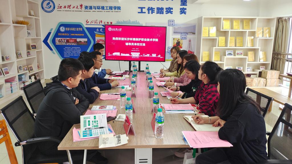 长沙环境保护职业技术学院辅导员一行6人先后参观了学院的“红心环语”辅导员工作室、党建文化长廊、红色书屋、大学生红色文化宣讲团、党建主题室等育人平台。