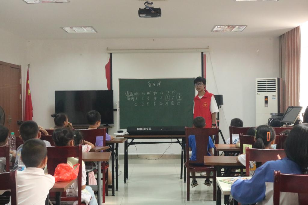 乐理知识普及课上,声歌队成员向孩子们普及自然大调的音阶唱名简谱表示五线谱表示字母表示五声音阶等乐理知识培养孩子对课外乐理知识的学习兴趣,让孩子们感受音乐的美。最后志愿者带领全体小朋友一起合唱了《小星星》这首经典曲目。