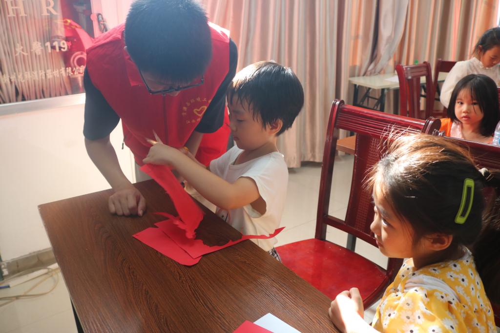 文体活动中,志愿者和孩子们一起剪纸,丰富孩子们的文化生活,营造浓厚的传统文化氛围,充分展现了我国传统剪纸文化的艺术魅力,继承和弘扬传统文化艺术,提高孩子们的艺术修养,为他们的活动增添生气学院体育中心的志愿者教孩子们乒乓,和孩子们一起打球,培养孩子对课外体育活动的兴趣,强健孩子们的体魄。