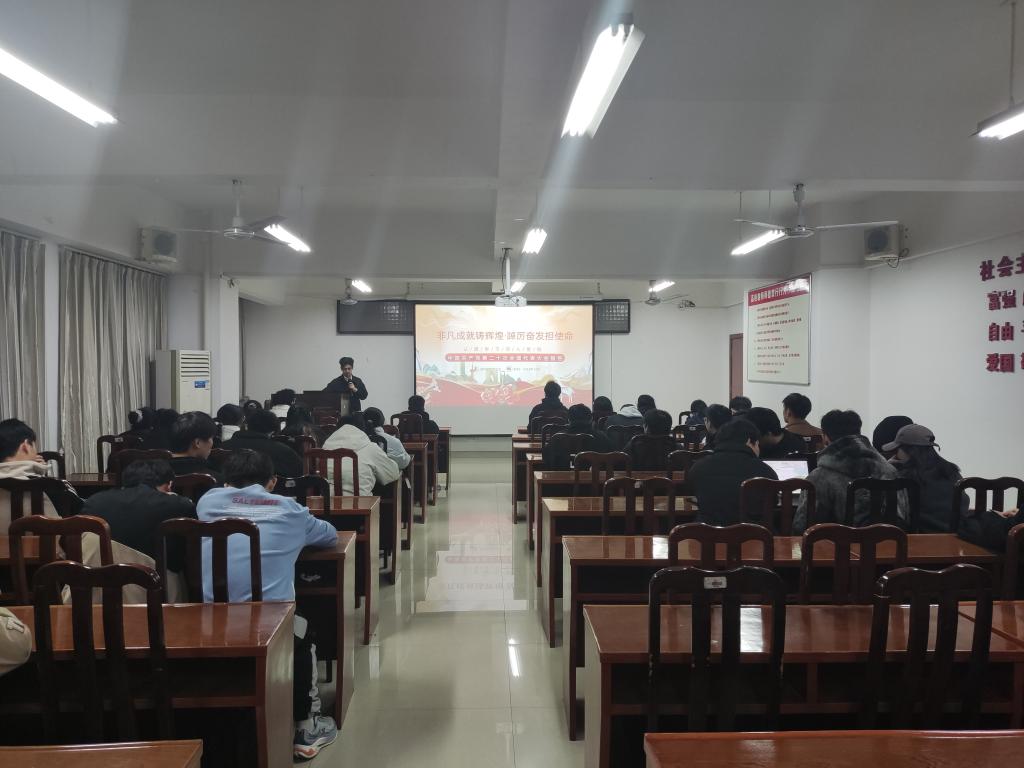 本网讯 12月6日,我院学生组织于黄金校区逸夫楼A610召开以“非凡成就铸辉煌·踔厉奋发担使命”为主题的集中教育会议,2022级和2023级学生骨干成员参加本次会议。会议由学生会成员地质212班彭胤钦主持。
