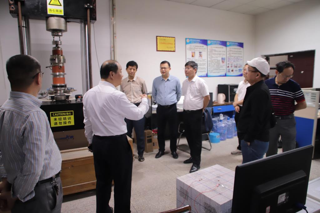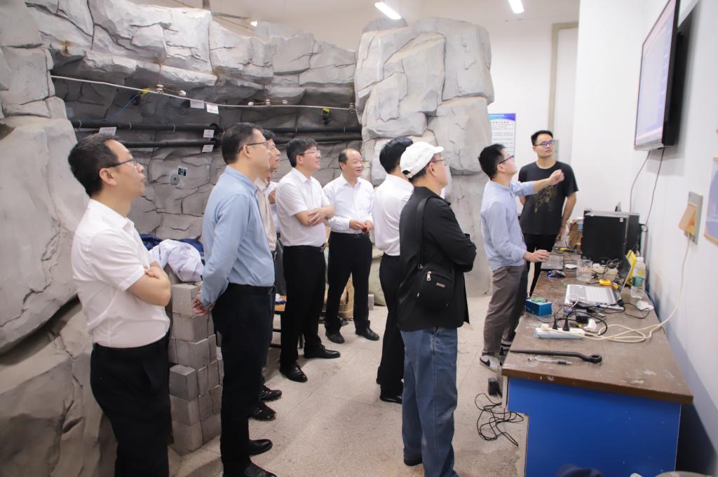 实地考察环节熊志华专家组等一同查看了相关实验室了解了项目开展的基础性研究和研发的声发射、位移监测预警成果。