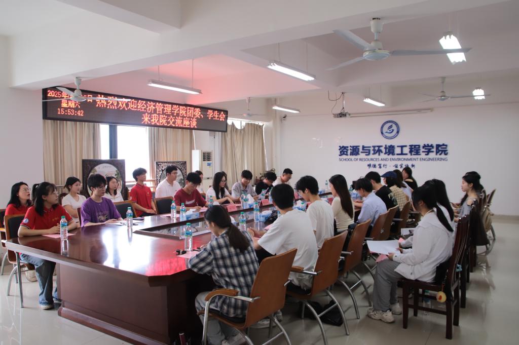 本网讯 5月17日下午,学院与经济管理学院团委、学生会于黄金校区逸夫楼第一会议室成功举办了一场以“资环经管齐聚力,交流互鉴共提升”为主题的交流会。