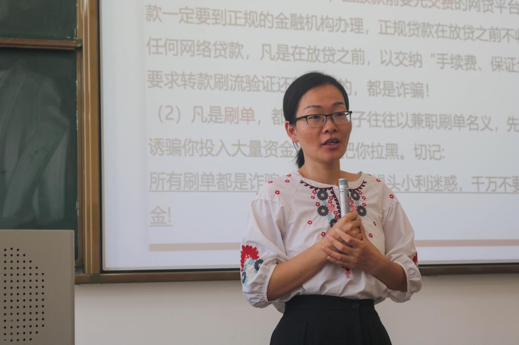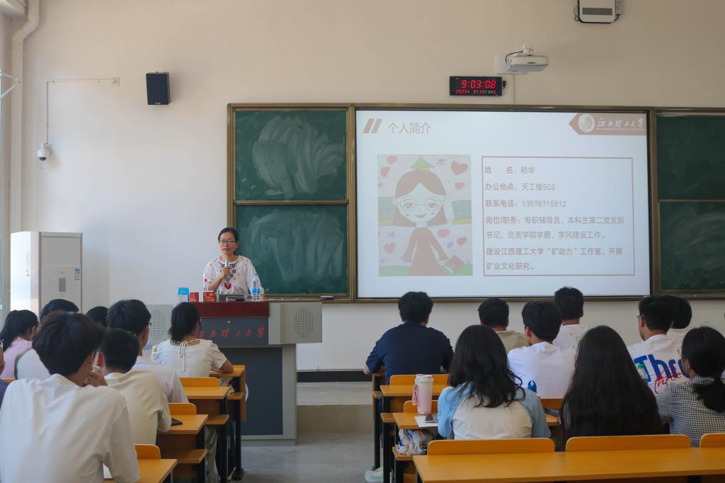 赖华从学校教育教学情况、学籍管理规定、学生资助政策等五个方面为新生介绍我院。她提出要在大学校园当中设立目标,以尽快适应大学校园生活。