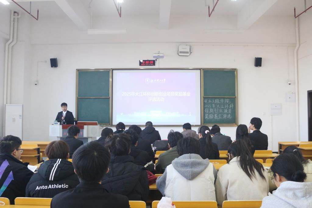 本网讯 为营造创新创业氛围,发掘优质创新创业项目。12月14日上午,我院在三江校区(西园)阳明楼106教室举办2025年度“大江环科”创新创业奖励基金评选会。钟霖、刘俊、赖华、刘娟、宋本如五位老师受邀担任评委,学院各创新创业团队参加了评选会。