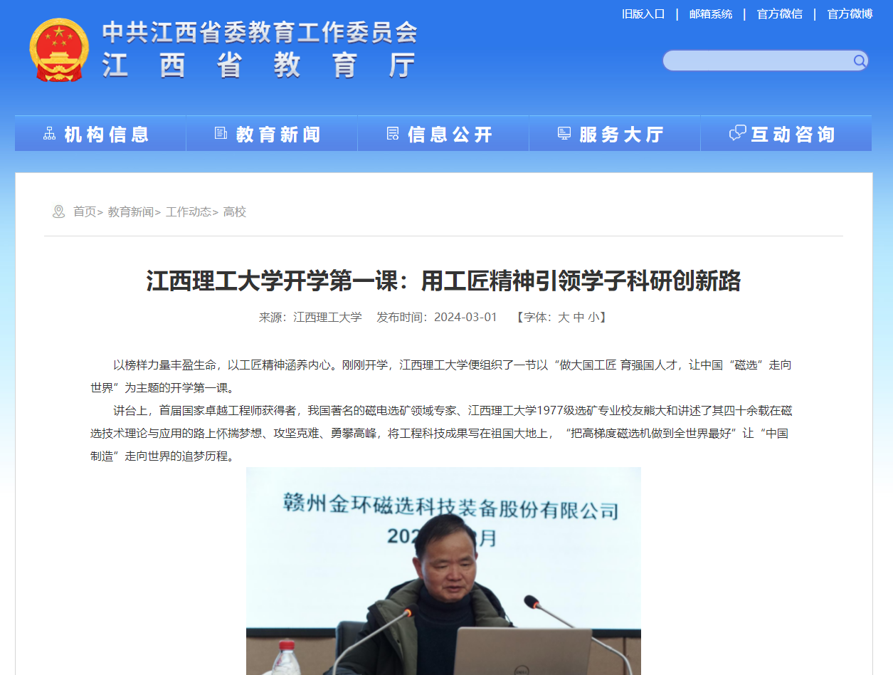 《江西省教育厅》:江西理工大学开学第一课:用工匠精神引领学子科研创新路