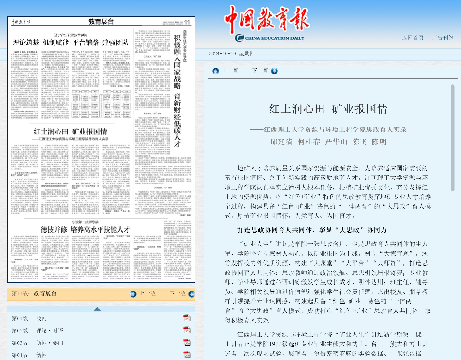 地矿人才培养质量关系国家资源与能源安全。为培养适应国家需要的富有报国情怀、善于创新实践的高素质地矿人才,雷速体育手机在线登录认真落实立德树人根本任务,根植矿业优秀文化,充分发挥红土地的资源优势,将“红色+矿业”特色的思政教育贯穿地矿专业人才培养全过程,构建具备“红色+矿业”特色的“一体两育”的“大思政”育人模式,厚植矿业报国情怀,为党育人、为国育才。