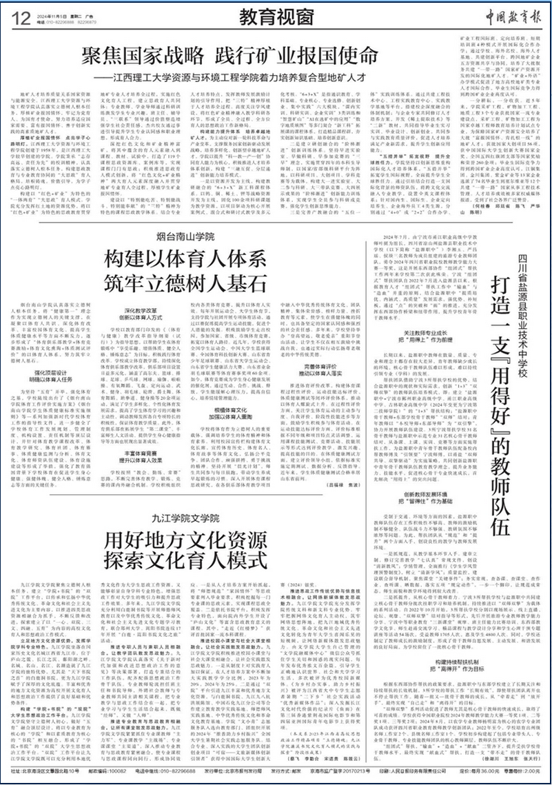 三是完善产教融合的“五位一体”实践训练体系。通过共建工程技术中心、工程实践教育中心、实践教学基地等平台,搭建校企深度融合的体制机制;与企业专家共同修订人才培养方案,开发《稀土提取技术》等“三新”教材,共同指导毕业生实习实训、毕业设计、创新创业,共同参与实践教育质量评价,促进人才培养满足产业新需求,提升学生创新应用能力。