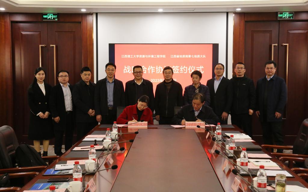 何桂春、陈武代表双方签署协议。双方将本着“优势互补、资源共享、互利互惠、共同发展”的原则,全面建立产学研合作关系,实现教学与生产科研无缝对接,提升服务行业发展和区域经济建设的能力,促进共同发展。我院党政办负责人及第七地质大队办公室、地质科、地质科技信息中心、生态修复院负责人参加签约仪式。