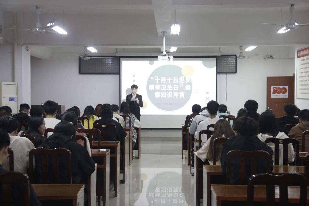 本网讯 为营造良好宣传氛围,共助心理健康,10月10日晚,我院于黄金校区逸夫楼第二会议室举办“世界精神卫生日”心理健康知识竞赛活动,活动由学院朋辈心理辅导服务中心承办。国家二级心理咨询师、辅导员梁颜祯和同学们一同参加了活动。