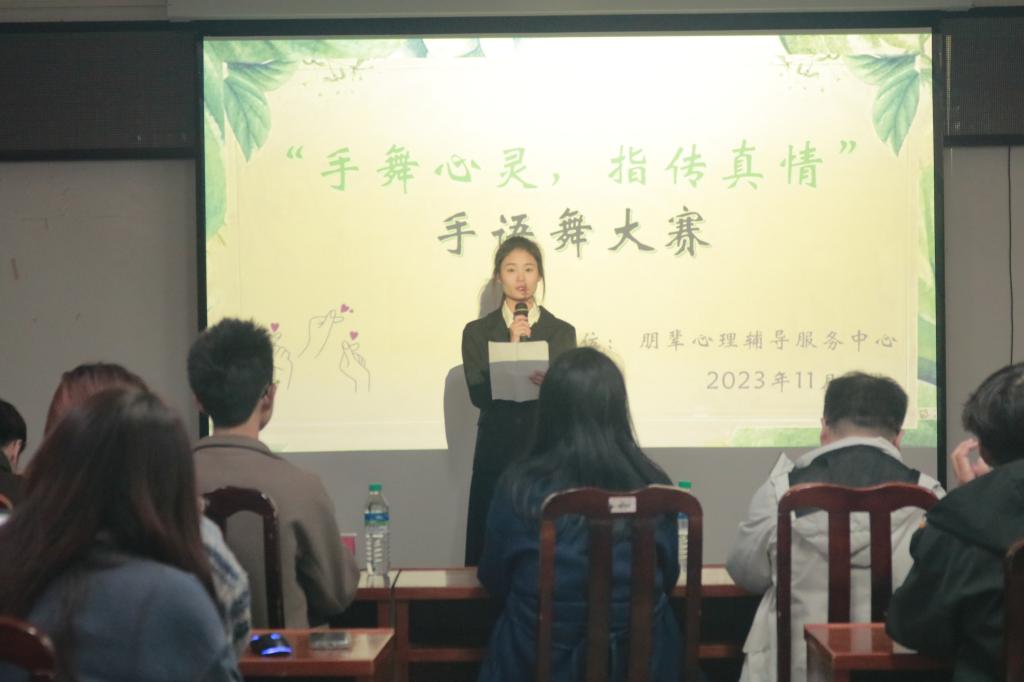 本网讯 为提高同学们对心理健康教育的兴趣,增强学生之间的交流,我院于11月12日在黄金校区逸夫楼第二会议室举办“手舞心灵,指传真情”手语舞大赛。校心理健康教育中心肖璟和学院辅导员张吉勇、梁颜祯、赖虔德、刘黎明担任评委,各年级参赛学生参加本次比赛。活动由朋辈心理辅导中心承办。