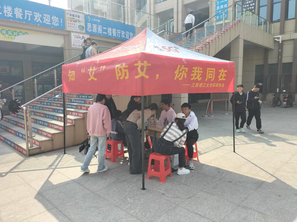本网讯  为增强大学生预防艾滋病的意识,11月25日,由我院主办、绿色之家环保协会和青年志愿者协会共同承办的以“知‘艾’防艾,你我同在”为主题的“世界艾滋病日”宣传教育活动在三江校区东区食堂外顺利举办。