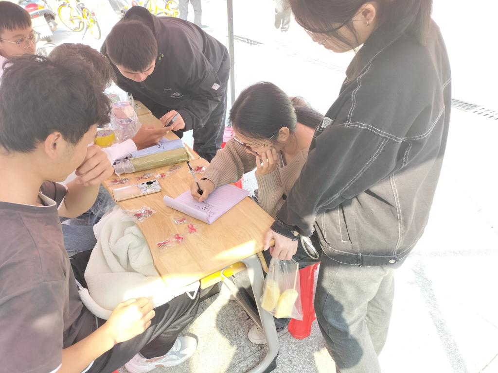 在帐篷旁,志愿者们为来往经过的学生发放艾滋病宣传手册,进行艾滋病问卷调查;针对驻足停留的学生,志愿者会在展板上为他们进行艾滋病相关知识的宣传,并普及预防措施。