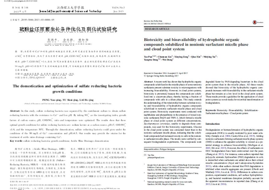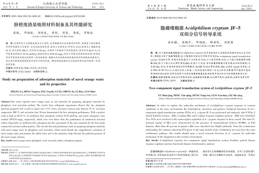 男,1976年5月生,博士,副教授,硕士生导师,江西省微生物学会会员,雷速体育手机在线登录生物工程教研室主任。1999年和2004年分别获得江西农业大学农学学士学位和微生物学硕士学位,2012年3月获得上海交通大学生物医学工程(生物技术)专业博士学位,2013年9月至2014年9月美国伊利诺伊理工大学访问学者。目前主要从事环境微生物及固废资源二次开发利用等领域研究,主要涉及微生物冶金、废水微生物处理技术、农业固废微生物转化处理技术等;近年来先后主持国家基金项目、省部级项目、重点实验室开放基金项目等10余项,发表学术论文40余篇,其中高水平论文/EI收录论文14篇。