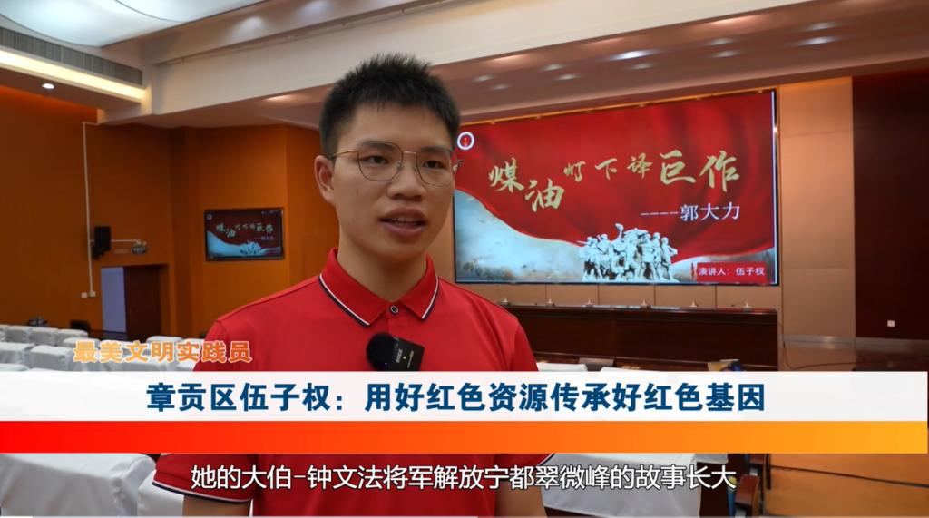 如今接力棒已经传到了我的手上,作为新时代的大学生,我能感受到习近平总书记那一句“用好红色资源,传承好红色基因,把红色江山世世代代传下去”的殷切期盼。身体内自带的红色基因让我顺利的加入了由江西理工大学成立的“大学生红色文化宣讲团。立足于家乡特点,我积极开发家乡的红色故事,尽我的绵薄之力让红色战士们“永生”。