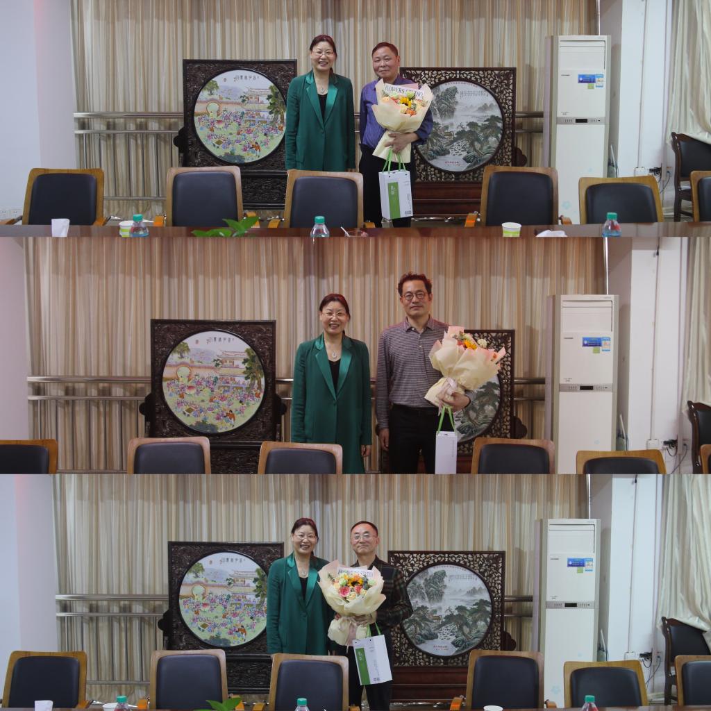 何桂春代表学院为三位教师送上鲜花,全体与会人员共同合影留念。