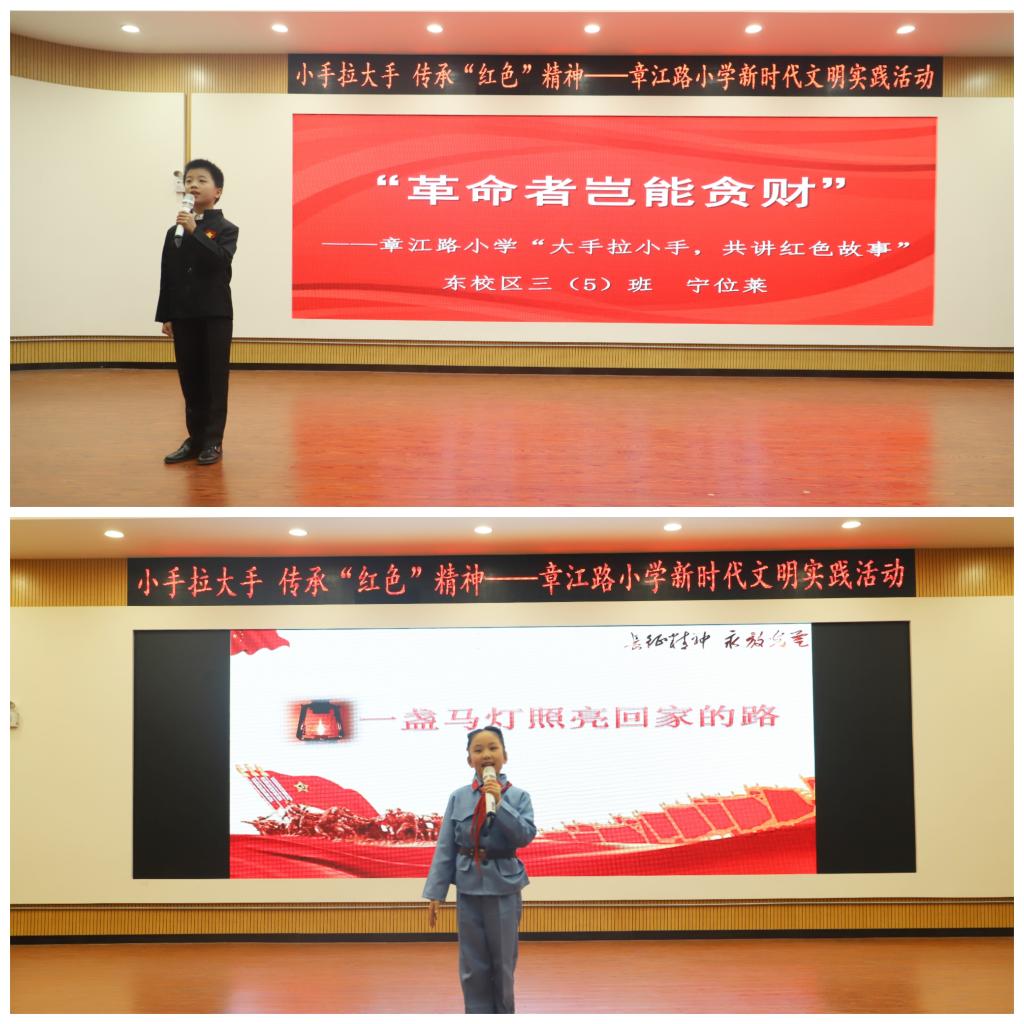 此外,三年级宁位莱、唐煜琪也分别演讲了陈赞贤《革命者岂能贪财》、钟招子《一盏马灯照亮回家的路》的红色故事,以生动人、以情感人,宣讲团成员也为之称赞。三年级老师代表也带来了朗诵节目。